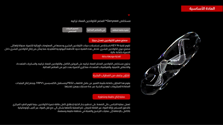 70% مستخلص Genyeast™ من الكولاجين المخمّر المعاد تركيبه.